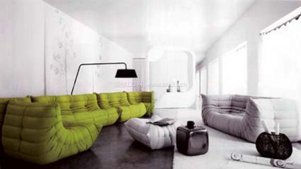 簡約時(shí)尚風(fēng)的客廳中,因?yàn)橛辛税咨膲斆媾c灰色的地板,所以整個(gè)家居都被貫徹了低調(diào)的空間基調(diào),讓大家走進(jìn)來的一瞬間就自然而然的把目光落在綠色的褶皺沙發(fā)上,整個(gè)空間瞬間有了大氣而不是時(shí)尚的即視感。