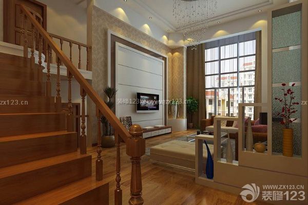 復式樓上的扶欄也是一大亮點。在充分考慮到安全性的前提下,樓上的扶欄常常注重突出裝飾性。大體有圓弧型或直線型,生活中采用曲線方式的比較多,使空間在視覺上有一個靈動的變化。