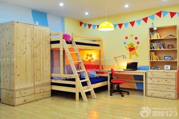 兒童居室的色彩應豐富多彩,活潑新鮮,簡潔明快,具有童話式的意境,最好以明亮、輕松、愉悅為選擇方向,色澤上不妨多點對比色。家具的色調可根據小孩子比較喜歡的顏色來選定:黃色優雅、稚嫩;粉色可愛、素凈;綠色健康、活潑;藍色安靜、童話色彩較濃;綠白相配的兒童組合柜清新明快。鮮艷明快的色彩,不僅可以使兒童保持活潑積極的心理狀態和愉悅的心境,而且還能改善室內亮度,造成明朗親切的室內環境,處在其中,孩子能產生安全感和歸屬感。