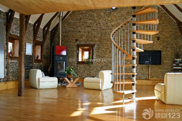 樓中樓樓梯材質(zhì)二:實(shí)木樓梯