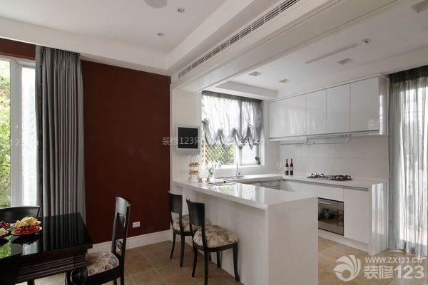 首先廚房的隔斷應該具有一定的功能性,開放式廚房隔斷能夠分離廚房與餐廳之間的空間,使空間擁有一定的層次感,對于小戶型的廚房來說采用開放式設計,然后在廚房與餐廳之間安置一個隔斷,可以收納廚房中不經常使用的物品,也可以做成一張小小的臺面,供家人就餐使用。大戶型的廚房中的隔斷則能夠有效的分離空間感,更是也具有一定的美觀效果。