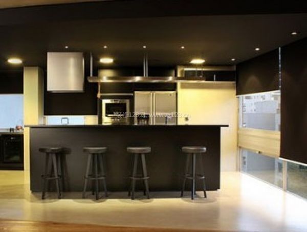 廚房采用黑色的整體基調(diào),大膽而利落,彰顯出十足的年輕氣息。柔和的黃色燈光則打破了空間色彩的單調(diào),很好地點綴了空間,為廚房增添了藝術(shù)美感。