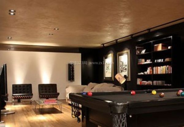 客廳的一旁放置了臺球桌,成就了一個茶余飯后的娛樂空間。黑色的格調(diào)與對面的白色背景墻形成鮮明的反差,給這個溫馨的大空間帶來一些視覺沖擊力,也讓家更顯時尚感。