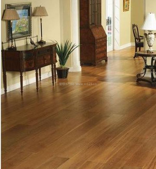 (2)面積大或采光好的房間,用深色實木復合地板會使房間顯得緊湊;面積小的房間,用淺色實木復合地板給人以開闊感,使房間顯得明亮、根據裝飾場所功用的不同,選擇不同色澤的地板。例如客廳宜用淺色、柔和的色彩,可營造明朗的氛圍。臥室應用暖色調地板。