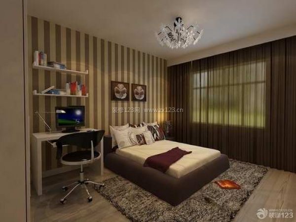 男生的房間,條文壁紙加上簡單的書桌