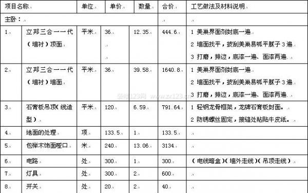 首先要做的是根據投標圖紙核對裝修預算表,對相關材料按品牌、廠家和工藝的不同逐一進行詢價。裝修裝飾工程所用的材料種類繁多,且因為技術的發展以及人們對于材料藝術性的要求不斷增加,致使新品牌材料不斷涌現、新材料更是日新月異的變化著。在這樣的情況下,到底要怎樣做裝修費用明細表呢?下面小編就為大家提供一份裝修費用明細表,供各位業主朋友參考參考,希望對要裝修的業主朋友們在做裝修費用明細表時有所幫助。