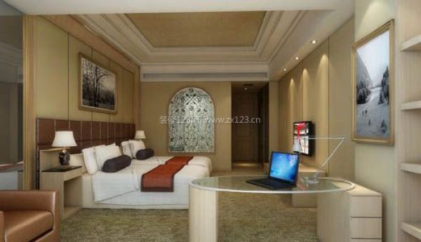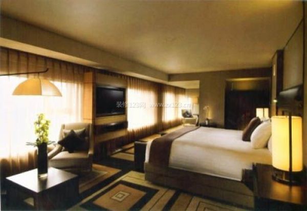 墻面、吊頂宜簡潔大方。界面(墻面、吊頂、地面)處理要平淡,體現樸素、舒適的氛圍。在顏色的選擇上,尤要注意調和、含蓄,顏色種類不能過多過雜,至多吊頂及墻面選用兩種色澤搭配,比如白乳膠漆吊頂配以淺米黃、暖灰等彩色墻面,再以一條掛鏡線區分開來,酒店客房照明宜平淡中見溫情。照明設計及燈具的選擇要注意造型的樸實及發光方式的確定,要在平淡中見溫情.客房裝修首先要注意客房的私密性。客房的隱秘性主要體現在客房的不可見和不可聽。這就要求它要具有較為嚴密的保護措施,這包括了門扇的嚴密度和窗簾的嚴密度。(制定酒店裝修預算容易陷入的幾個陷阱)