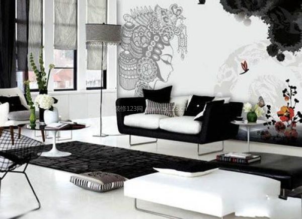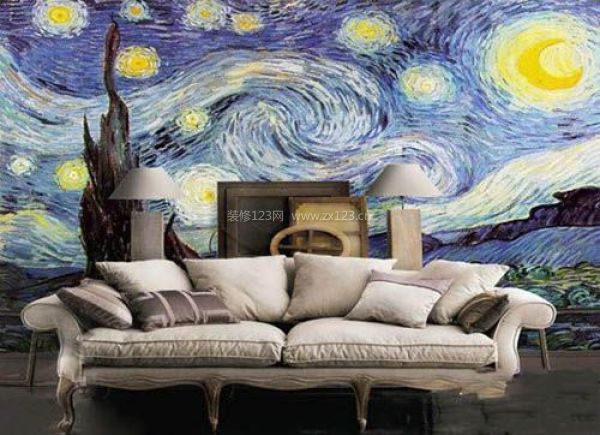 彩繪沙發(fā)背景墻 為客廳空間添風采