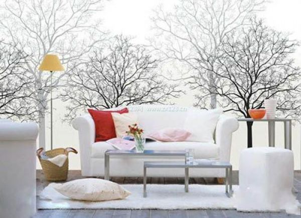 白色的沙發(fā)搭配根根分明的樹枝,使這個客廳具有了冬天的味道。這個空間也顯得十分干凈清爽,十分適合用于夏天的裝飾,給人帶來一種清涼之感。