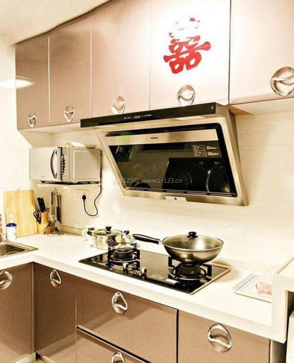 小巧的廚房,咖啡色的整體櫥柜。