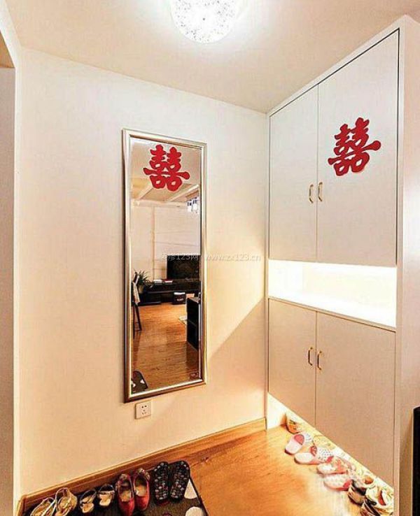 玄關處設計的白色鞋柜以及儲物柜。