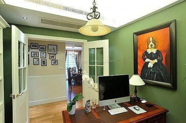 書房采用了讓人心情舒暢的綠色,不僅讓人在工作之余,視覺上可以得到休息,同時也與整個房間優雅的氛圍相吻合。