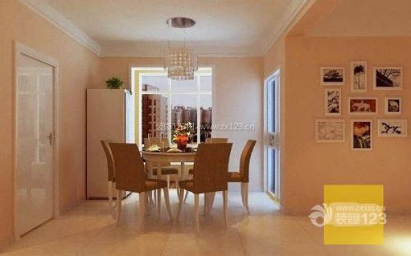餐廳整個空間以粉色為主色調,淡粉色的墻漆營造了餐廳空間溫馨的就餐環境