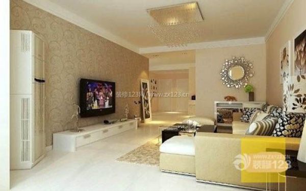 電視背景墻采用了素色的花紋壁紙,與整個空間的色彩搭配協調