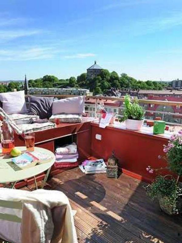 隱藏著的大收藏柜,在天氣不好的情況下可以把陽臺上所有的坐墊抱枕等都收納于其中。陽光舒適的露天環(huán)境,是用餐、親友聚會的好地方。