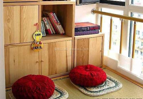 墻邊幾個自由組合搭配的小儲物柜,實用美觀,不但為空間的收納提供了便利,與榻榻米搭配起來也顯得非常有格調。涼臺選擇采用日式榻榻米風格著實是個明智之舉,偶爾翻書品茶,偶爾小睡片刻,精致而悠閑的生活盡在這里。