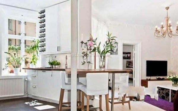 北歐風格的家庭居室的裝修,在整個小空間中,白色無疑是整個亮色點,讓家看起來特別的純凈,優雅,然而在這個小小的空間中,采用簡單小巧的餐廳來作為客廳和廚房之間的隔斷,是一種很細膩的裝修手法,不光解決了空間小的問題,而且將空間很好的進行了分化,空間中多置入了一些亮色來進行空間色彩的陪襯,讓家更富有神話色彩!