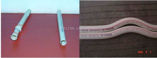 質(zhì)量好的PPR管韌性好,可輕松彎成一圈而不斷裂,而劣質(zhì)管較脆,一彎即斷。