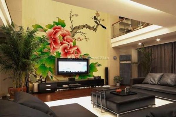 電視背景墻選擇需深于墻面顏色,根據(jù)個(gè)人愛好和客廳所選壁畫來綜合選擇。如果造型復(fù)雜、面積不大,建議不要選用花型過大的圖案,這樣顯示不出來花型的效果。