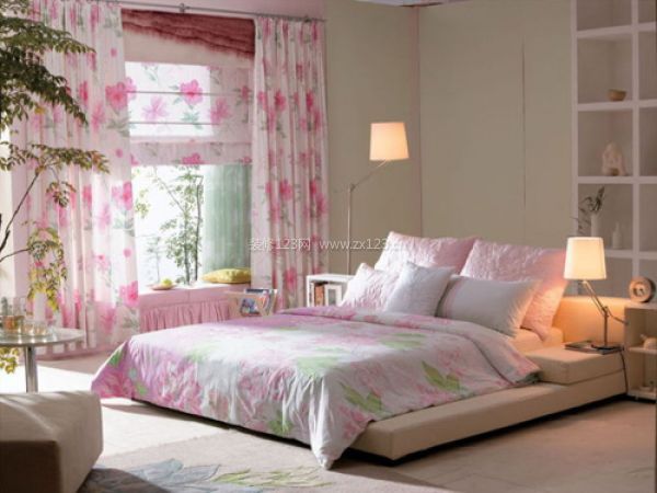 粉色系的碎花窗簾,清新的床品,加上一些綠色植物的點(diǎn)綴,在陽光下清新自然,而當(dāng)天色暗下來時(shí),床頭的臺(tái)燈柔和的光則會(huì)給人一種安心的感覺。