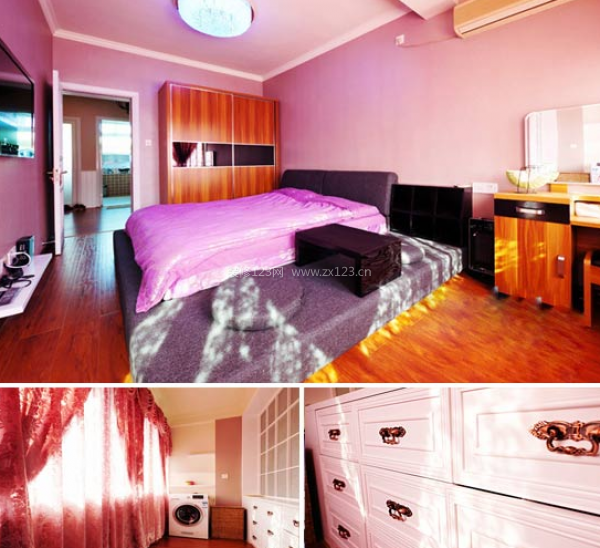 淺紫和粉紅的搭配將嫵媚舒適在臥室得到體現,在臥室中醞釀出溫馨浪漫的愛情色彩。