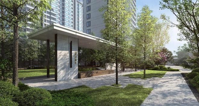 地塊內天然擁有地勢高差,層次豐富的多重植被循勢覆蓋全區。陽光草坪、爛漫花境點綴,不同空間里被賦予不同的植物制圖,四時季節變換,形成自然山林之感。