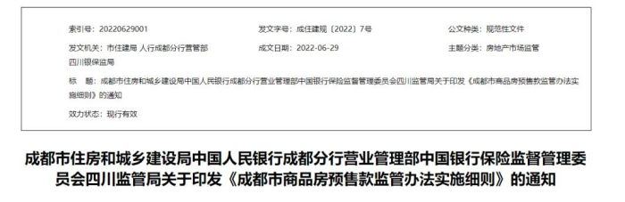7月1日,成都市住建局官網(wǎng)上發(fā)布了《成都市商品房預(yù)售款監(jiān)管辦法實(shí)施細(xì)則》。新的實(shí)施細(xì)則相對(duì)于2020年發(fā)布的細(xì)則,最大的變化是房地產(chǎn)開發(fā)企業(yè)申請(qǐng)支取監(jiān)管額度內(nèi)的預(yù)收款,需要滿足的進(jìn)度節(jié)點(diǎn)由4個(gè)增加到了7個(gè),即增加了外墻裝飾完成、商品房交付率80%且無重大糾紛隱患、該預(yù)售批次所有房源完成所有權(quán)首次登記三個(gè)進(jìn)度。