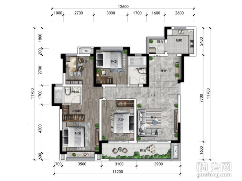 B2戶型(4室2廳,116.6平,南北)