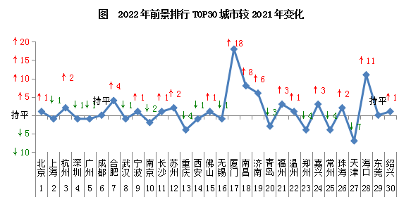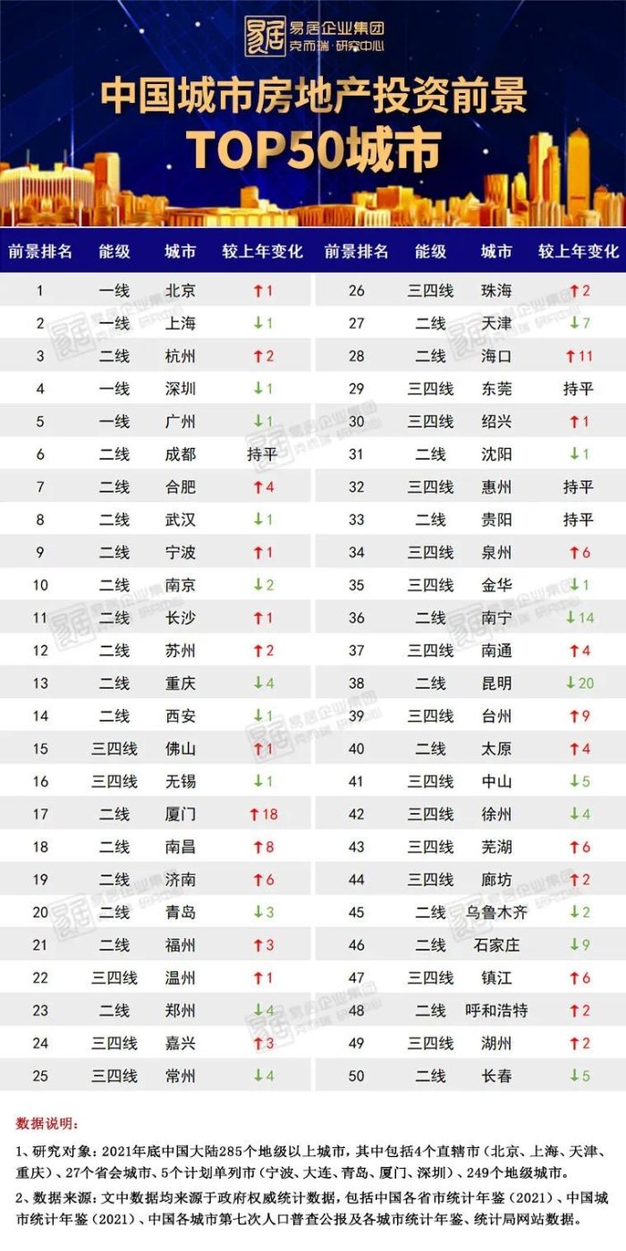 前景排行前10的城市名單中,長(zhǎng)三角城市數(shù)量進(jìn)一步增加至5個(gè),占據(jù)半數(shù)席位。合肥因行業(yè)波動(dòng)下相對(duì)穩(wěn)健的經(jīng)濟(jì)發(fā)展和房地產(chǎn)市場(chǎng)表現(xiàn),排名上升四個(gè)位次升至第7,而重慶受2021年市場(chǎng)上下半年冷熱顯著分化、土地市場(chǎng)持續(xù)低迷等因素影響,排名跌出前十。至此,長(zhǎng)三角所有直轄市、省會(huì)和副省級(jí)城市全部躋身前十。