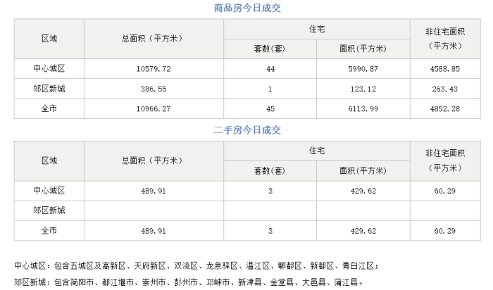 24日,成都市住建局住建蓉e辦數據顯示,成都市全市商品房成交(備案)總面積10966.27平方米,其中其中商品住宅成交(備案)45套,商品住宅成交(備案)面積6113.99平方米。二手房成交(備案)總面積489.91平方米,其中二手住宅成交備案3套,二手住宅成交(備案)面積429.62平方米。