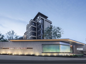 東叁金茂逸墅占地約57.5畝,由兩棟小高層(9%無償移交)與18棟疊拼別墅組成