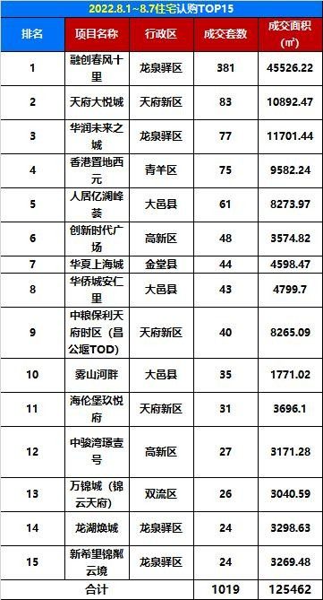 8月第1周成都商品房銷量出爐!融創(chuàng)春風(fēng)十里榮獲榜首!