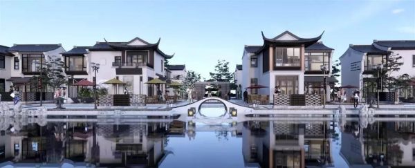 項目“清一色的低密合院”。想象一下,在大自然的環抱之下,一排排粉墻黛瓦的中式合院在田園間漸次成長。置身其間,觀景長街、綿長曲巷、共享石坊、獨戶小院,環境與建筑仿佛融合成一體,處處散發著不被打擾的中式禮序和詩意。