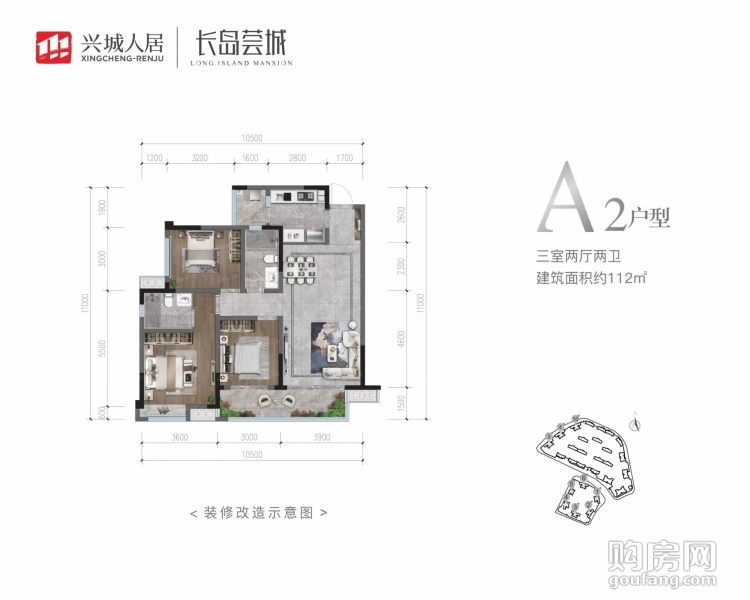 3室2廳2衛(wèi),A2(2室2廳,112平,南)