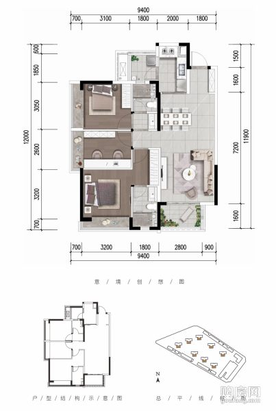 華潤置地未來之城C2戶型(3室2廳,118平,南)