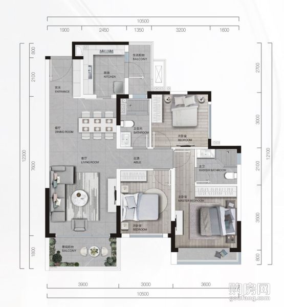 華潤置地未來之城A02戶型(3室2廳,108平,南)