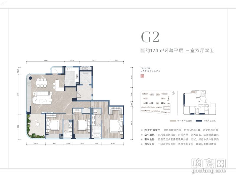 綠城鳳棲鷺鳴G2戶型(3室2廳,174平,南北)