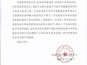 公告內(nèi)容:為貫徹落實(shí)黨中央、國務(wù)院決策部署,堅(jiān)持房子是用來住的、不是用來炒的定位,根據(jù)《成都市房地產(chǎn)市場平穩(wěn)健康發(fā)展領(lǐng)導(dǎo)小組辦公室關(guān)于進(jìn)一步促進(jìn)房地產(chǎn)市場平穩(wěn)健康發(fā)展的通知》《成都市住房和城鄉(xiāng)建設(shè)局關(guān)于建立二手住房成交參考價(jià)格發(fā)布機(jī)制的通知》等文件精神,現(xiàn)將購買二手住房(再交易住房)辦理住房公積金貸款的相關(guān)事項(xiàng)公告如下:購買二手住房辦理住房公積金貸款的,住房價(jià)值按住建部門確認(rèn)的網(wǎng)簽備案合同價(jià)款、房屋評估價(jià)以及住建部門公布的成交參考價(jià)格三者中的最低值認(rèn)定并計(jì)算可貸額度。