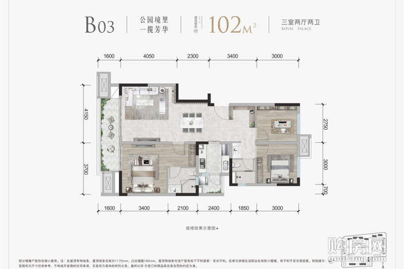 北京城建國譽府B03戶型(3室2廳,102平,南北)