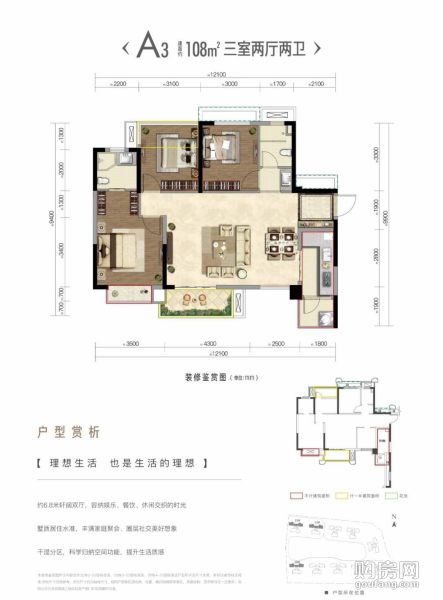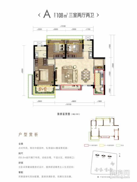 復(fù)地天府灣A3戶型(3室2廳,108平,南)