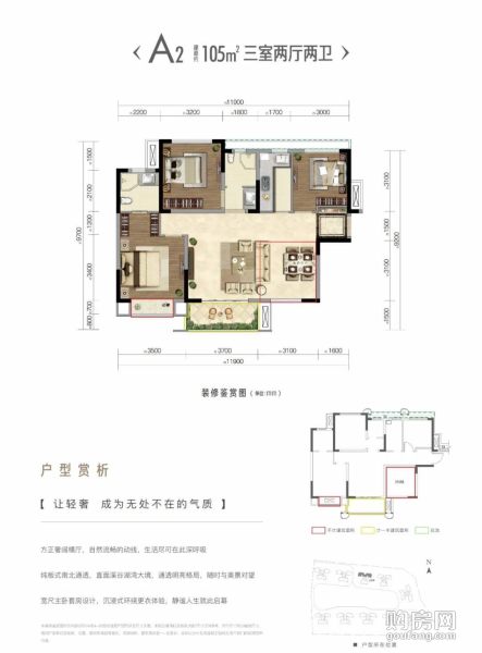 復(fù)地天府灣A2戶型(3室2廳,105平,南)