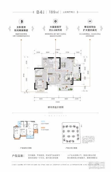 環天時代中心二期B4戶型(3室2廳,89平,南北)