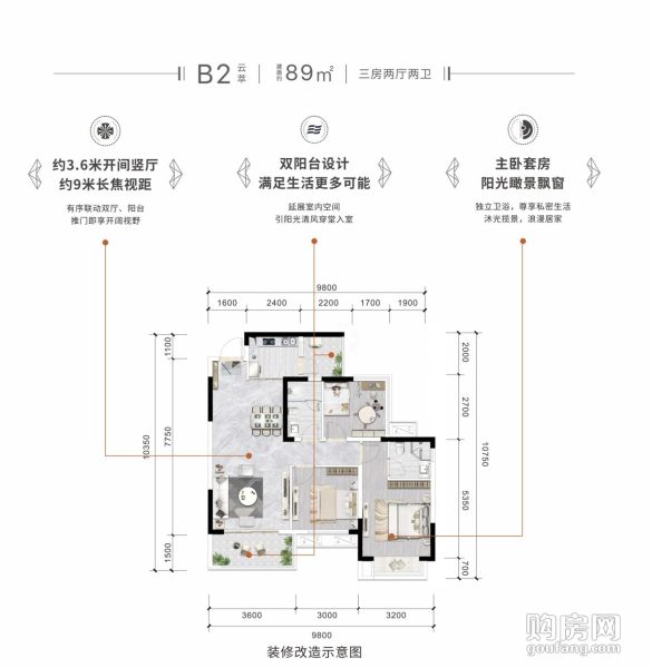 環天時代中心二期B2戶型(3室2廳,89平,南北)