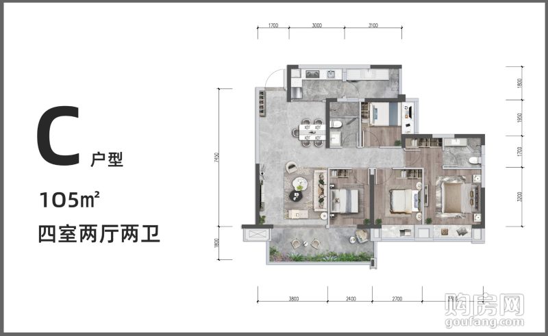通威世地長灣C戶型 (4室2廳,105平,南)
