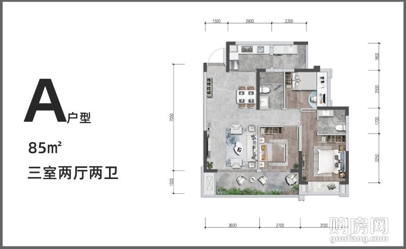 通威世地長灣A戶型 (3室2廳,85平,南)