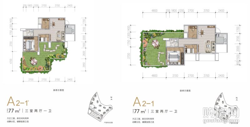 濱江酈城A2-1戶型(3室2廳,77平,南北)
