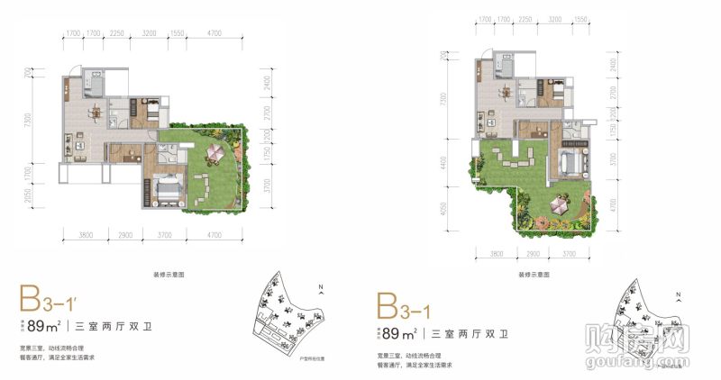 濱江酈城B3-1戶型(3室2廳,89平,南北)