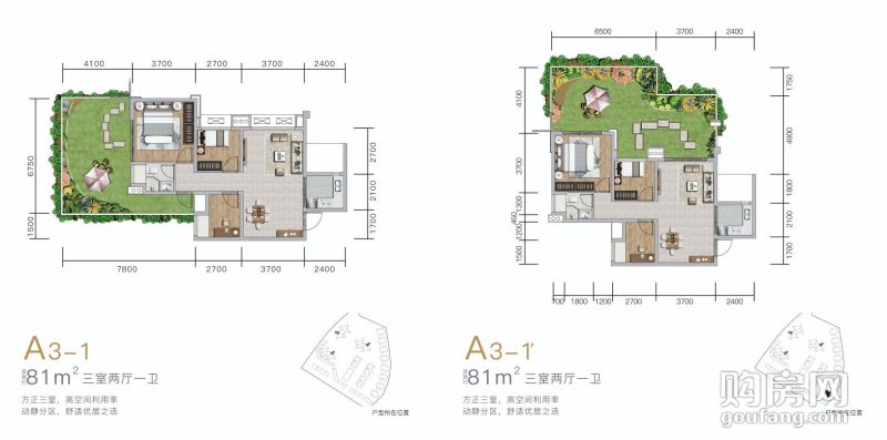 濱江酈城A3-1戶型(3室2廳,81平,南北)