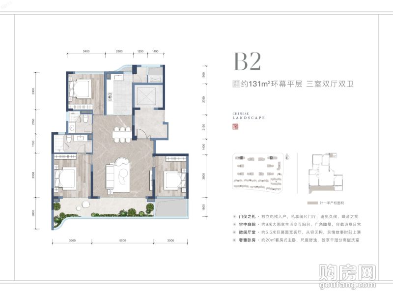 綠城鳳棲鷺鳴B2戶型(3室2廳,131平,南)