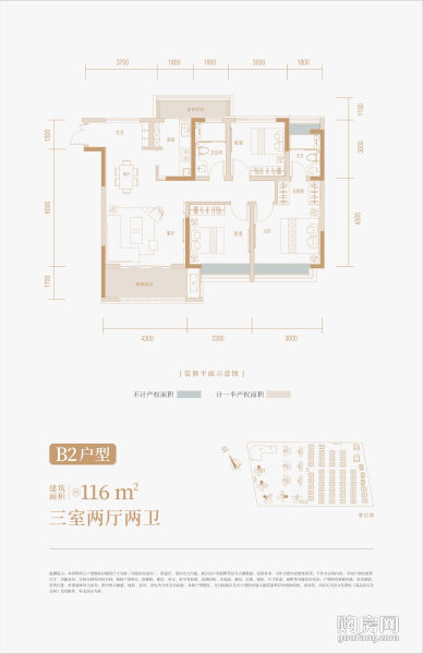 B2戶型(3室2廳,116平,東)